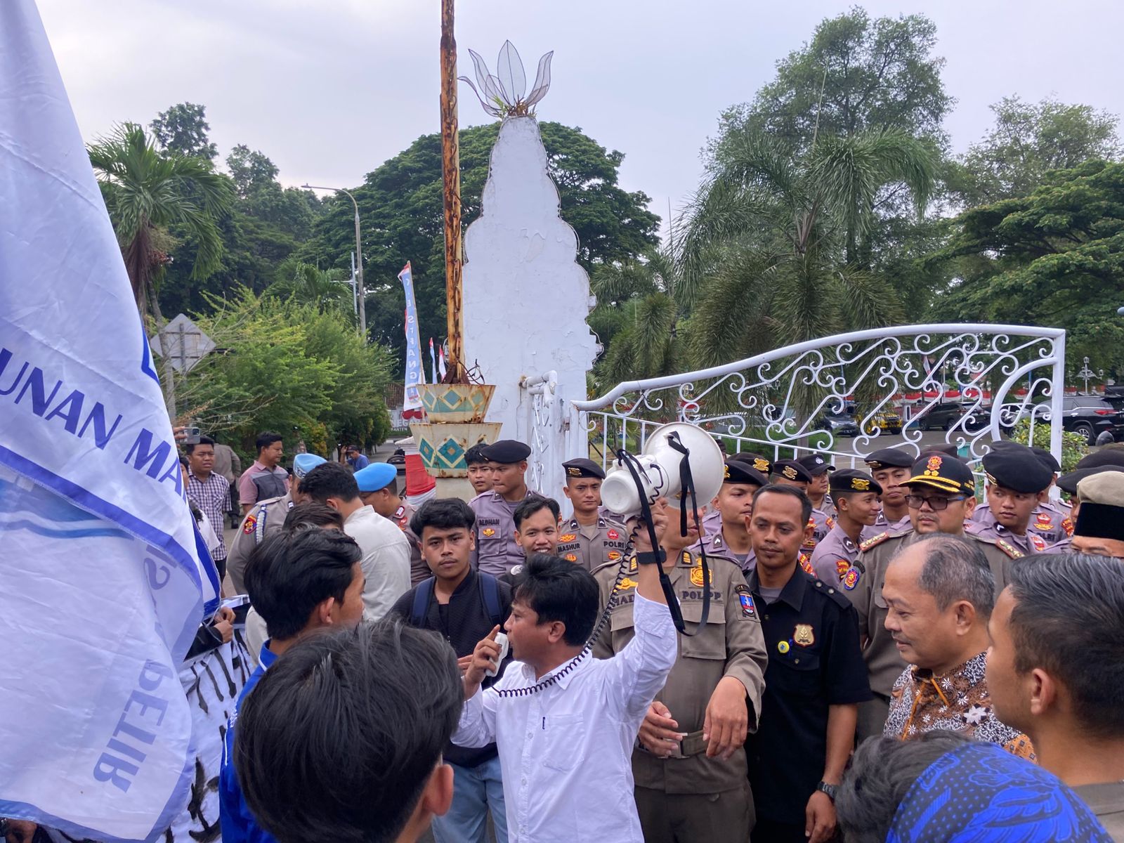 Selain itu, mahasiswa menyoroti proyek pembangunan jalan penghubung Desa Kamuning–Bojonegara.