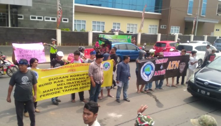 Dalam orasinya, massa aksi menuntut agar pihak Kejari Serang segera menuntaskan persoalan adanya dugaan korupsi di beberapa Perusahaan BUMD Kabupaten Serang periode 2010-2015 yang turut menyeret nama mantan Bupati Serang, Ahmad Taufik Nuriman (ATN).