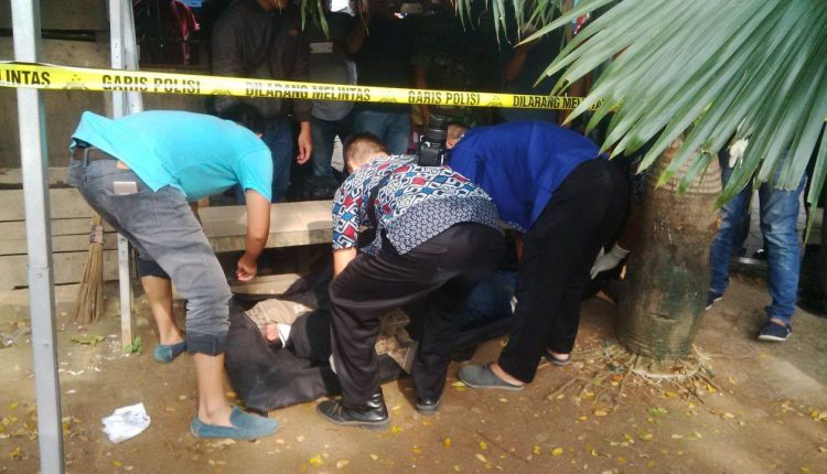 Mayat laki-laki yang ditemukan dengan menggunakan celana jeans dan berbaju hitam ditemukan oleh tukang sapu sekitar pukul 05.30 WIB.