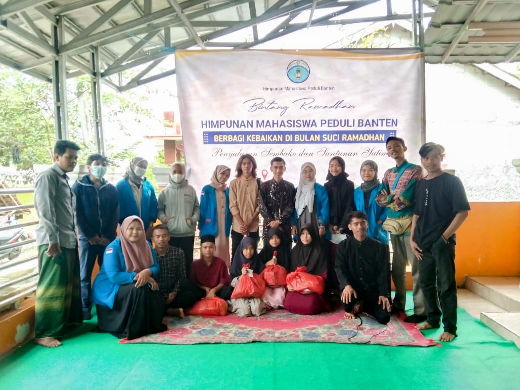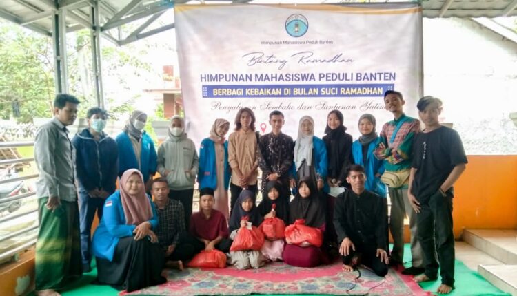SERANG – Pengurus Pusat Himpunan Mahasiswa Peduli Banten (PP HMPB) membagikan paket sembako dan santunan yatim kepada masyarakat Desa Bantar Panjang, Kecamatan Cikeusal, Kabupaten Serang dalam acara Bintang Ramadhan, Kamis (28/4/2022).