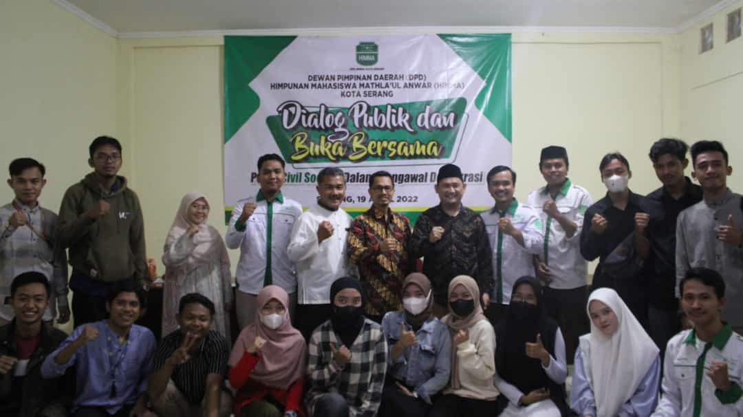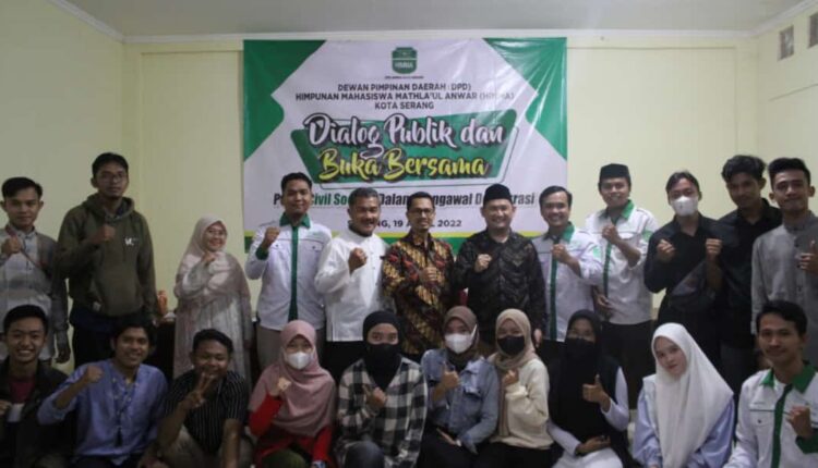 SERANG – Dewan Pimpinan Daerah Himpunan Mahasiswa Mathla’ul Anwar (DPD HIMMA) Kota Serang menggelar Dialog Publik dan Buka Bersama yang mengangkat tema “Peraan Civil Society dalam Mengawal Demokrasi” bertempat di aula STIE Dwi Mulya, Serang, Banten, Selasa, (19/4/22).