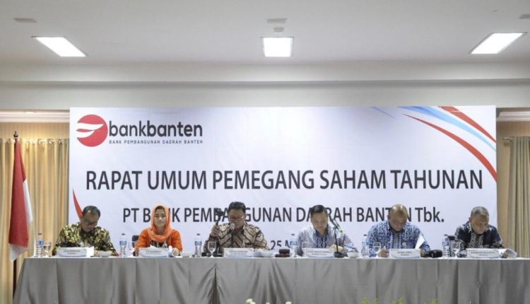 SERANG – PT Bank Pembangunan Daerah (BPD) Banten atau disebut Bank Banten menggelar Rapat Umum Pemegang Saham (RUPS) Tahunan di salah satu hotel di Kota Serang, Senin (25/3/2019).