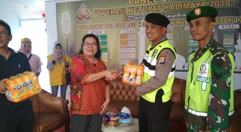 “Kedatangan kami sebagai wujud kepedulian kami kepada Polisi maupun TNI yang bertugas menjelang dan sesudahnya Idul Fitri, kami berharap dukungan yang sedikit ini dapat bermakna dan bermanfaat, salam kami untuk masyarakat Kota Serang, Polri TNI beserta keluarganya,” tegasnya. (*/Dave)