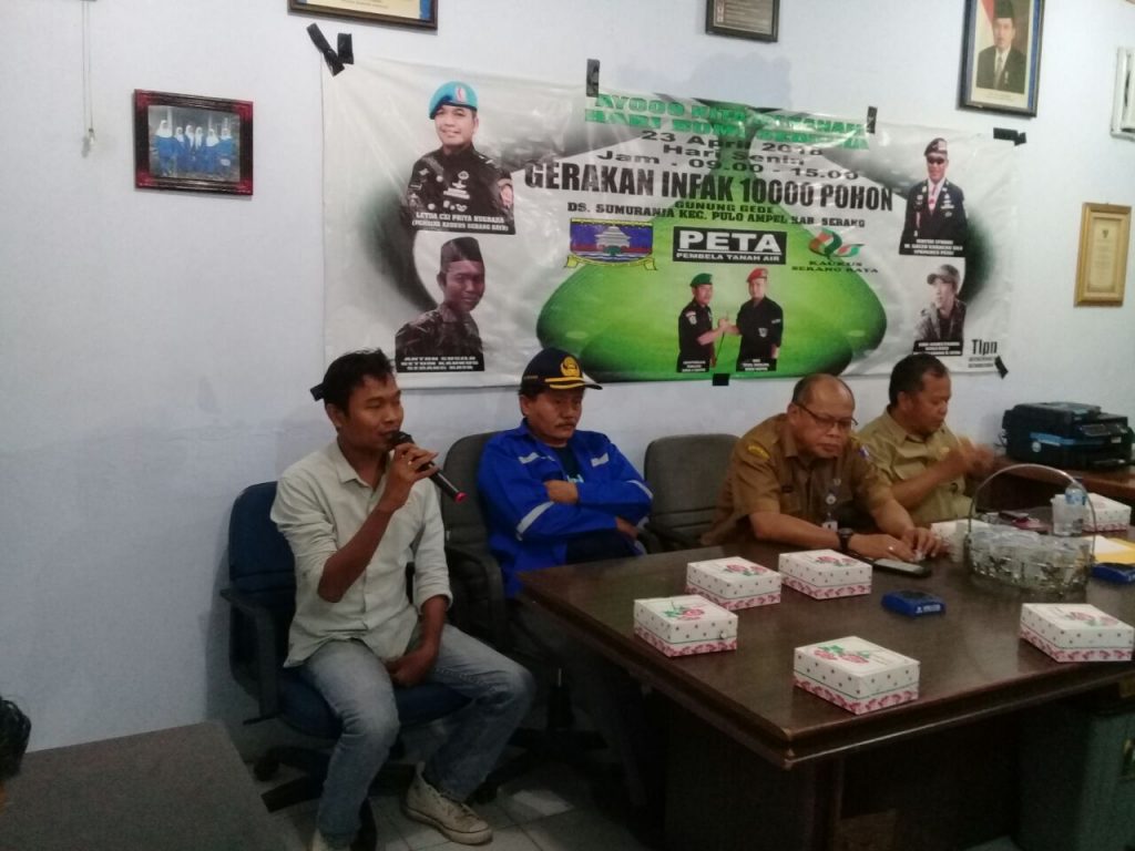 Serang – Memperingati hari bumi sedunia , Kaukus Serang Raya bersama PT Polychem Indonesia dan Chandra Asri serta Dinas Lingkungan Hidup Kab Serang melakukan penanaman 10.000 pohon produktif di Gunung Gede Desa Sumuranja kecamatan Puloampel kabupaten Serang, Senin (23/4/2018).