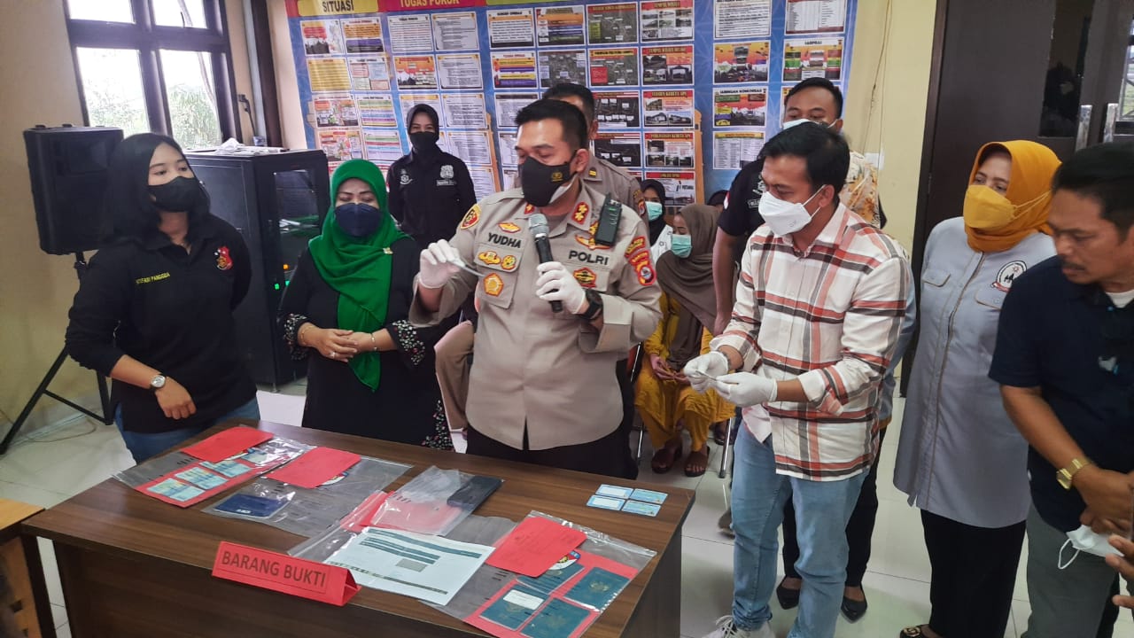 “Dari rumah tersangka ada 7 calon TKW yang diberangkatkan ke Arab Saudi. Dari 7 orang itu, diantaranya merupakan gadis di bawah umur yang identitasnya sudah dipalsukan. Ada yang kelahiran 2005 tapi dibuat identitas jadi kelahiran 1997 biar dapat KTP. Dan tersangka ini tidak bekerja sendiri, ada bagian yang mengurusi soal itu (pembuatan KTP palsu) dan masih kita kejar,” ujar Yudha.