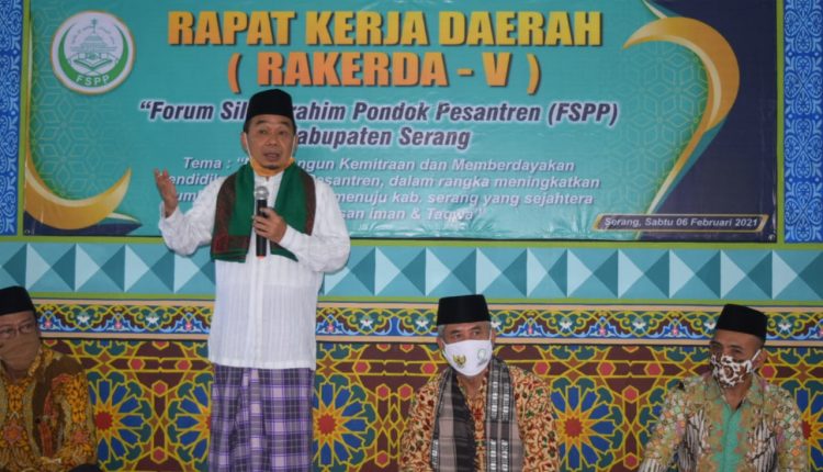 SERANG – Forum Silaturahmi Pondok Pesantren (FSPP) Kabupaten Serang menyelenggarakan rapat kerja daerah (Rakerda) kelima, di Kabupaten Serang, Sabtu (6/2/2021). Acara tersebut dihadiri oleh Anggota Komisi I DPR RI, Jazuli Juwaini.