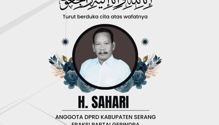 SERANG – Kabar duka datang dari anggota DPRD Kabupaten Serang, H. Sahari yang tutup usia di Rumah Sakit Sari Asih, Kota Serang, pada Kamis (27/3/2025) petang.