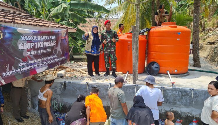 SERANG – Dalam rangka melaksanakan program Karya Bhakti TNI, Grup 1 Kopassus bekerjasama dengan BPBD Kota Serang menyelenggarakan kegiatan sosial pembuatan toren Air dan membagikan air bersih untuk masyarakat di RT 01, RW 02. Kelurahan Cibendung, Kecamatan Taktakan Kota Serang, Selasa (31/10/2023).