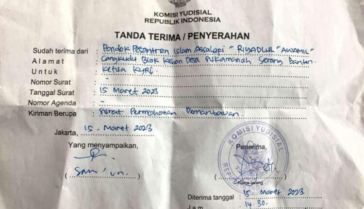 Pimpinan Pondok Pesantren Riyadul Awamil Cangkudu, KH Sonhaji telah melayangkan surat ke Komisi Yudisial, pada Rabu 15 Maret 2023. Pihaknya berharap para hakim mengambil keputusan yang adil dalam sidang vonis tersebut.
