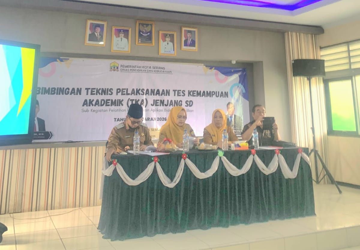 SERANG – Kota Serang menjadi daerah pertama di Provinsi Banten yang menggelar Bimbingan Teknis (Bimtek) Pelaksanaan Tes Kemampuan Akademik (TKA) jenjang Sekolah Dasar (SD).