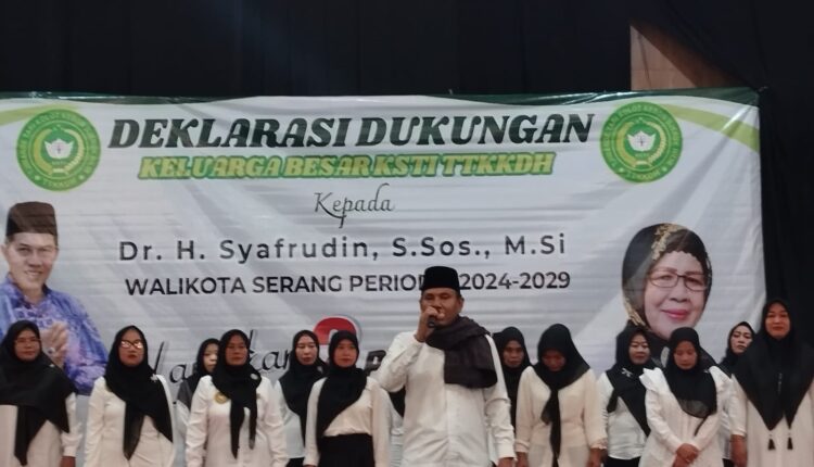 SERANG – Keluarga Besar KSTI TTKKDH Kota Serang mendeklarasikan dukungannya kepada bakal calon Wali Kota Serang Syafrudin pada Pilkada Kota Serang 2024.