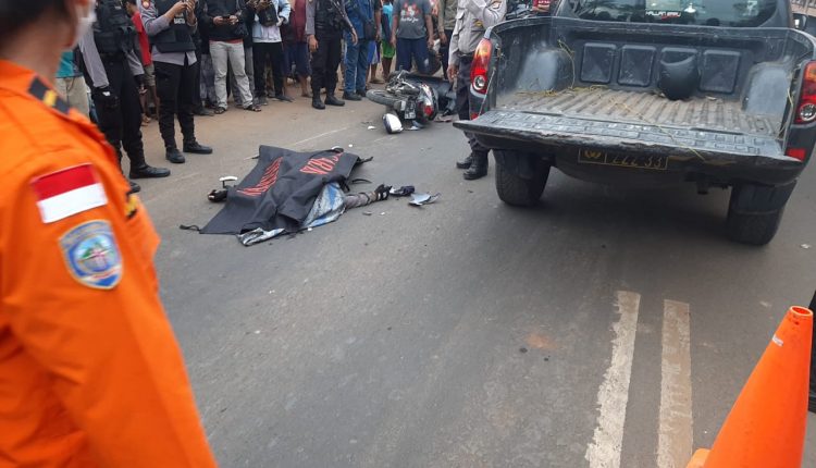 SERANG– Hendak nyalip kendaraan di depannya, pengendara sepeda motor terjatuh dan terlindas mobil truk, Senin (16/11/2020) sore. Akibatnya pengendara sepeda motor tewas seketika dengan kondisi kepala remuk.