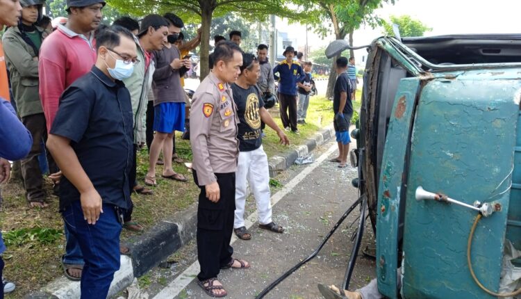 SERANG – Sebuah mobil elf berisi 7 penumpang terjungkal usai menabrak sepeda motor Honda Scoopy di Jalan Boru – Palima atau tepatnya di Kampung Jemaka Klatak, Kelurahan Cilaku, Kecamatan Curug, Kota Serang pada Jumat (27/5) sekitar pukul 11.50 WIB.