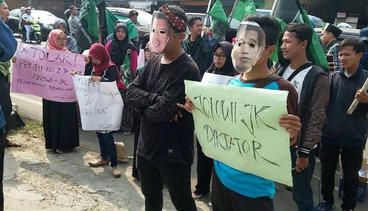 “Kami menolak pengesahan Perppu secara tegas, dan kami menilai pemerintahan Jokowi-JK sudah menjadi diktator yang membungkam rakyat dalam kebebasan beraspirasi dan berserikat,” katanya.