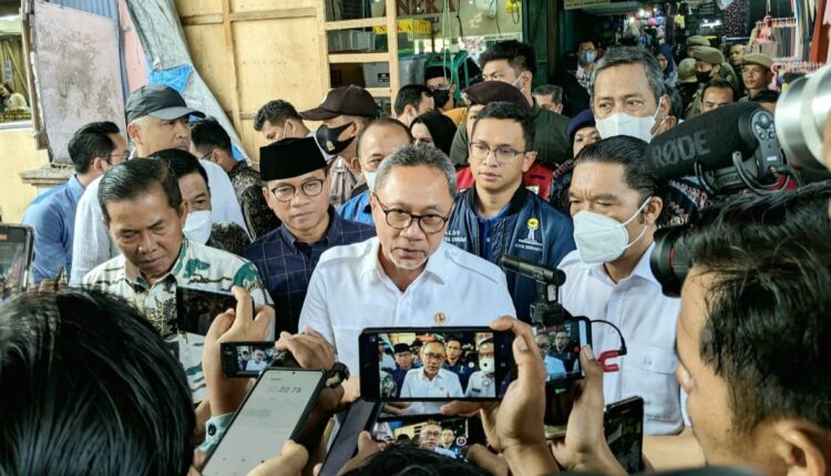 SERANG – Menteri Perdagangan (Mendag) Republik Indonesia, Zulkifli Hasan meninjau langsung Pasar Induk Rau, Kota Serang, pada Kamis 28 Juli 2022.