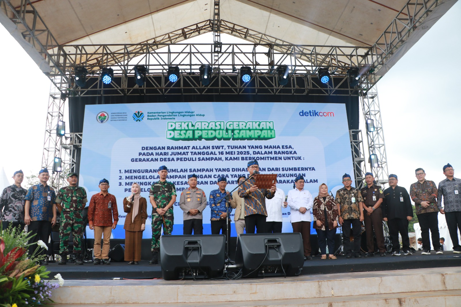 SERANG – Menteri Desa dan Pembangunan Daerah Tertinggal (Mendes PDT) Yandri Susanto mengumumkan Deklarasi Gerakan Desa Peduli Sampah dalam acara Bangun Desa Bangun Indonesia di Alun-alun Kecamatan Cikande, Kabupaten Serang, pada Jumat, 16 Mei 2025.