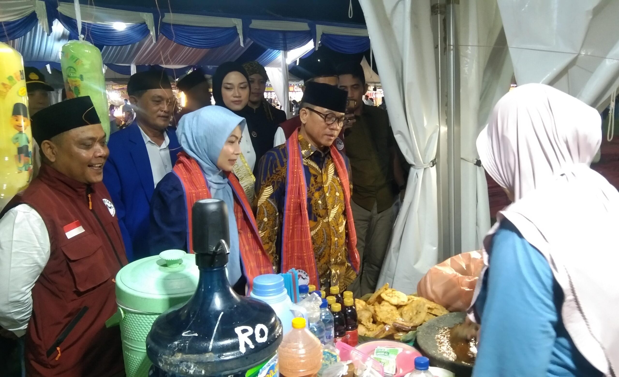SERANG– Menteri Desa dan Pembangunan Daerah Tertinggal (Mendes PDT) Republik Indonesia, Yandri Susanto, bersama istrinya yang juga Bupati Serang terpilih, Ratu Rachmatuzakiyah, memborong dagangan sejumlah pelaku UMKM dalam kegiatan Bazar Gebyar Expo Mancak 2025, di Alun-alun Mancak, Sabtu (3/5/2025) malam.