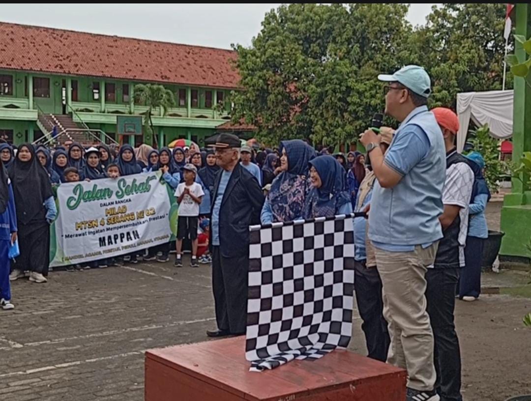 SERANG – Kepala Kantor Kementerian Agama (Kemenag) Kabupaten Serang, Uesul Qurni, menghadiri peringatan Milad ke-62 Madrasah Tsanawiyah Negeri (MTsN) 4 Serang yang digelar meriah di lingkungan sekolah, Kecamatan Anyer, Minggu (25/5/2025).