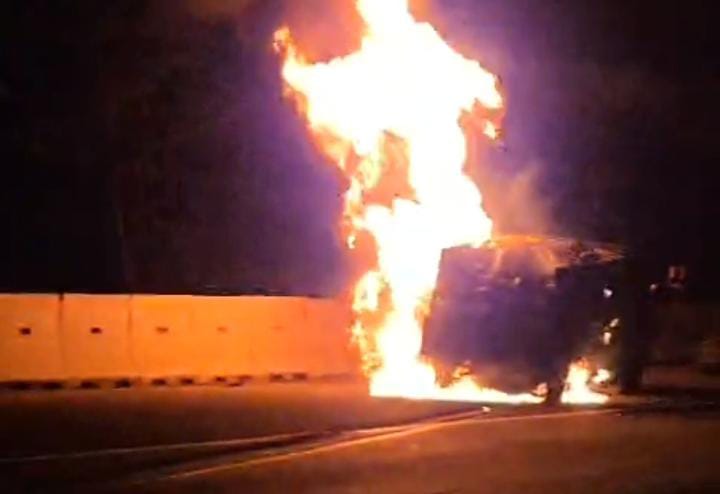 “Benar, terjadi kebakaran sebuah mobil pickup bermuatan kelapa di KM 48 arah Tangerang. Dugaan sementara akibat patah as sehingga memicu percikan dan menimbulkan kebakaran,” ujar Hana saat dikonfirmasi usai penanganan.