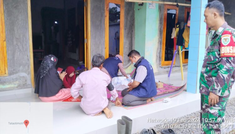 SERANG – Pasca terjadinya bencana alam banjir bandang akibat hujan deras yang berlangsung sekitar 30 menit, Babinsa Koramil 0602-13/Padarincang Kodim 0602/Serang mendampingi petugas Puskesmas Padarincang, untuk memberikan pelayanan kesehatan kepada warga Desa Barugbug, Kecamatan Padarincang, Kabupaten Serang, Provinsi Banten, Senin (19/02/2024).