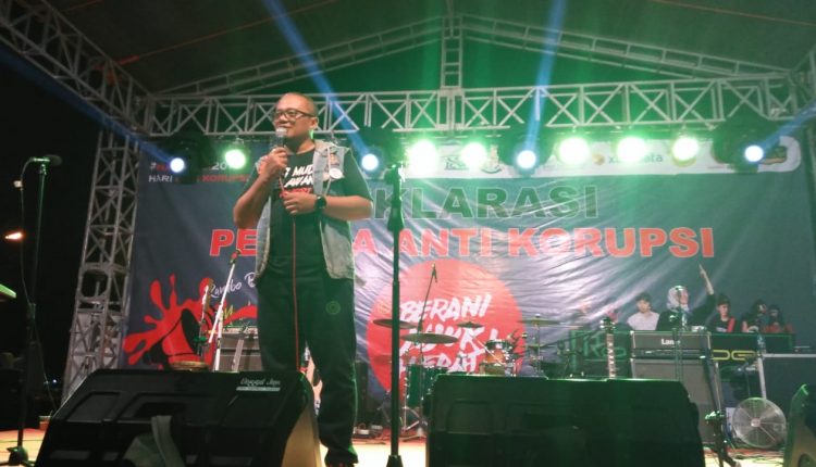 SERANG – Ratusan masyarakat ramaikan Deklarasi Pemuda Anti Korupsi yang digelar oleh Ikatan Wartawan Online (IWO) Banten di Alun-alun Barat Kota Serang, Sabtu (8/12) malam.