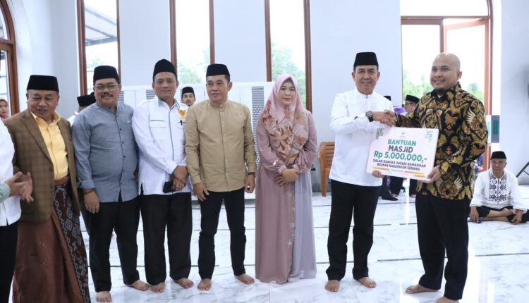 Pada momen tersebut juga dibagikan secara simbolis bantuan dari Badan Amil Zakat Nasional (Baznas) Kabupaten Serang untuk masjid, musala, majelis ta’lim, dan bantuan untuk pelaku UMKM.