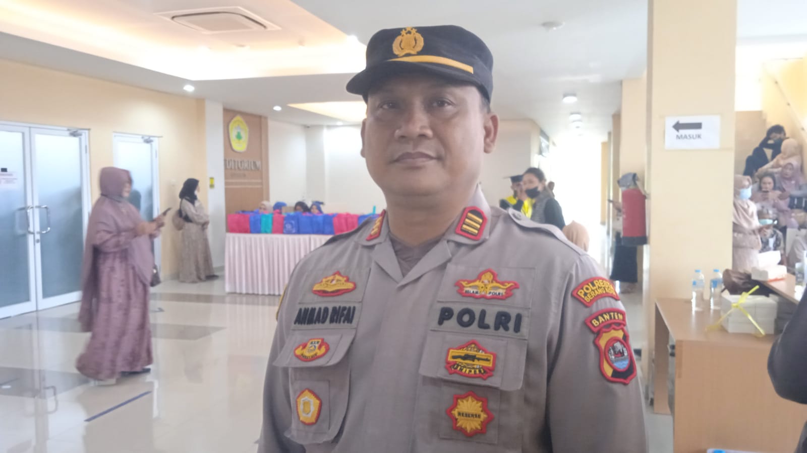Kapolsek Pabuaran Polresta Serang Ahmad Rifai mengatakan, pengamanan ini dilaksanakan dalam rangka untuk memberikan rasa nyaman dan aman kepada para wisudawan dan semua pihak didalamnya.