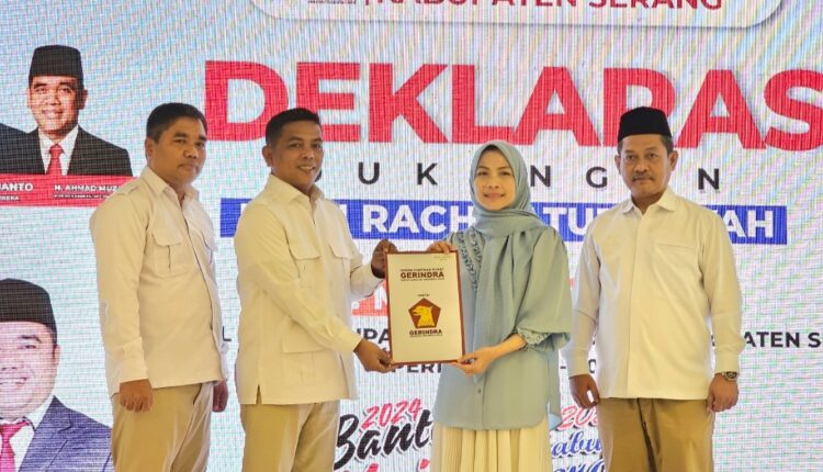 “Alhamdulillah kita mendeklarasikan Ratu Rachmatu Zakiyah–Najib Hamas sekaligus menyerahkan dokumen B1-KWK,” kata Ketua DPD Partai Gerindra Provinsi Banten Andra Soni.