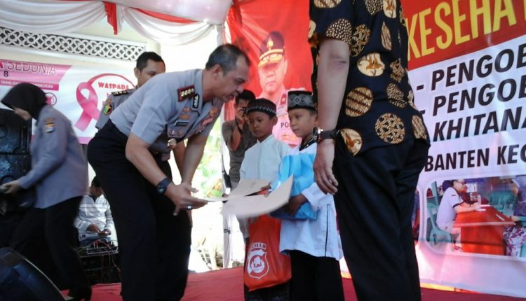 Dalam program tersebut Biddokes Polda Banten membuka pengobatan gratis seperti pengobatan umum, pengobatan gizi, khitanan massal dan usaha kesehatan gigi sekolah.