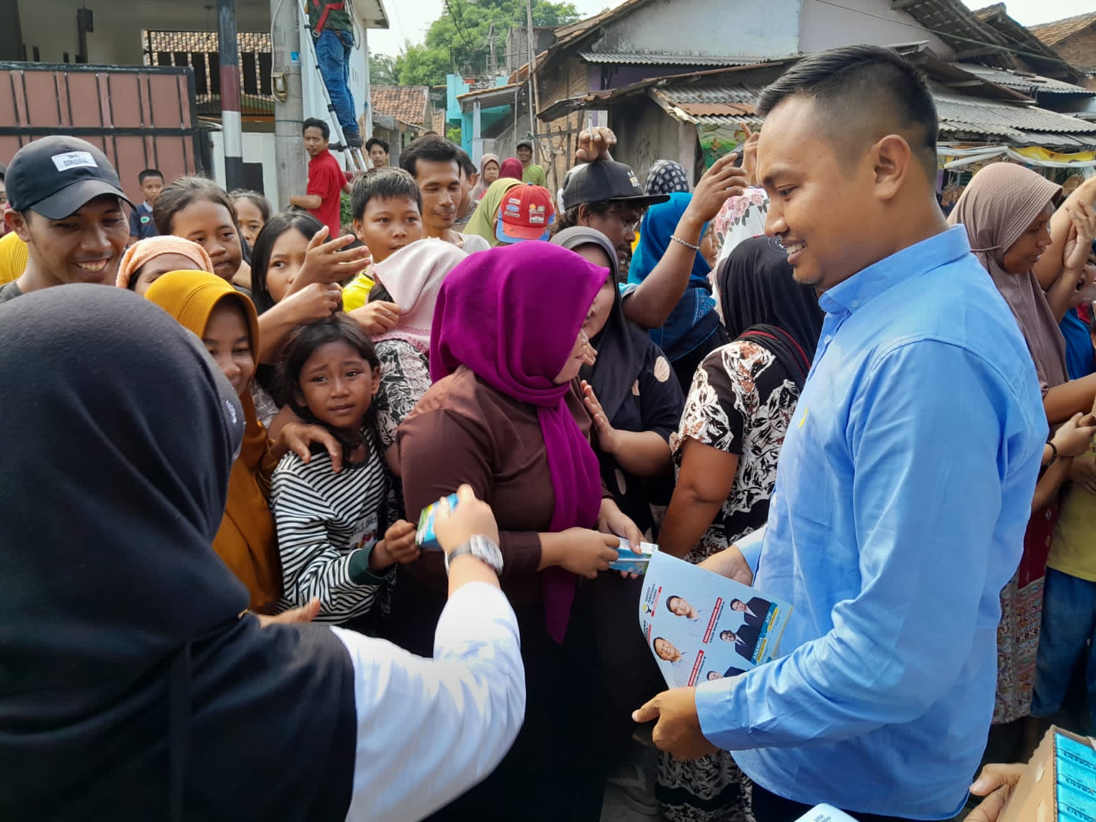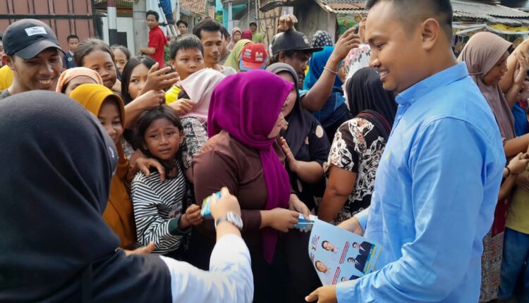 SERANG – Relawan Barisan Pengusaha Pejuang (BPP) Prabowo-Gibran Kota Serang membagikan makan siang dan susu kepada warga di Link Unyur, Kota Serang.