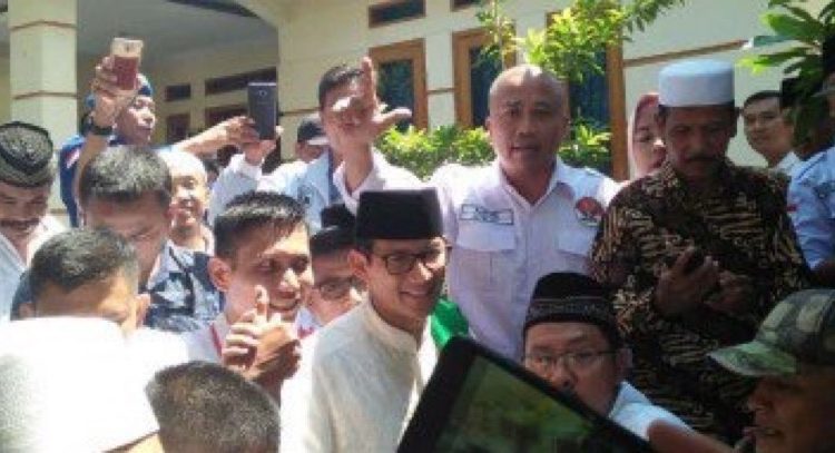 Sandi yang merupakan pasangan dari capres Prabowo Subianto, akhirnya menekan tombol sirine persemaian asrama putri Ponpes Al-Mubarok.