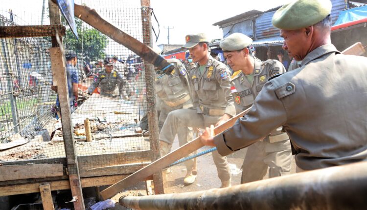 Satpol PP Kabupaten Serang Bongkar Puluhan Lapak Liar di Pasar Ciherang