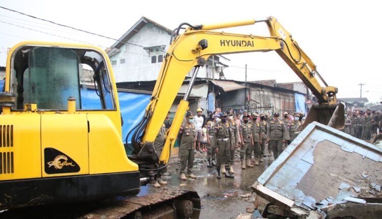 Satpol PP Kembali Robohkan Lapak PKL di Pasar Cikande