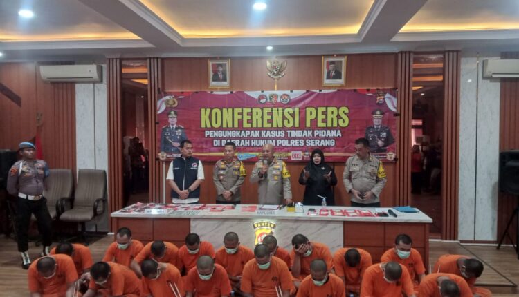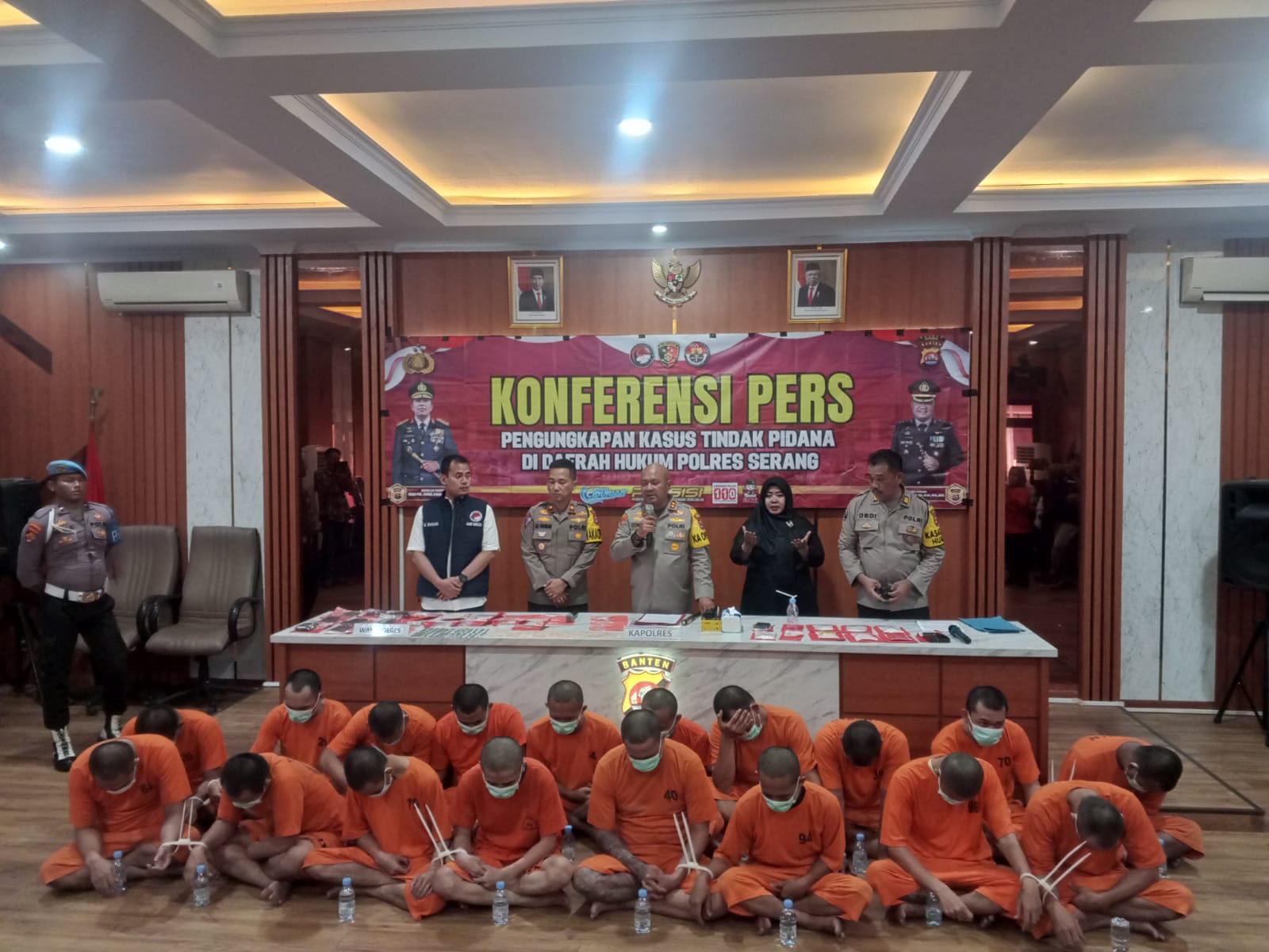 “Pelaku diamankan di tempat dan waktu yang berbeda. Untuk lokasi penangkapan, selain di wilayah hukum Polres Serang, juga di wilayah Kota Serang dan Kabupaten Lebak,” ungkap Kapolres didampingi Wakapolres Kompol Ali Rahman, Kasatresnarkoba AKP M Ikhsan dan Kasihumas AKP Dedi Jumhaedi saat konferensi pers di Mapolres Serang, Kamis (1/2/2024).