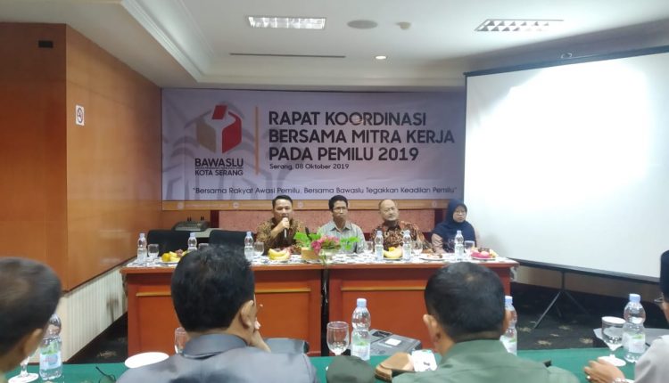 SERANG – Setelah berlalunya Pemilu 2019, Badan Pengawas Pemilihan Umum (Bawaslu) Kota Serang menggelar Rapat Koordinasi (Rakor) bersama mitra kerja. Hal itu dilakukan untuk menyerap masukan dan saran dari para mitra kerja.