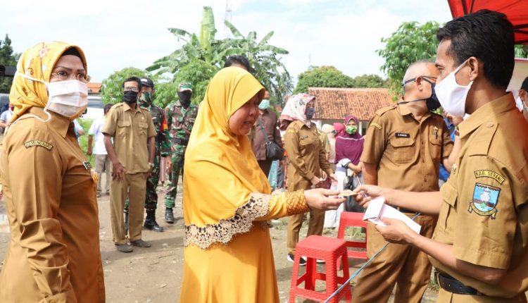 SERANG – Pemerintah Kabupaten (Pemkab) Serang menggelar operasi pasar (OP) untuk menurunkan harga gula dan bawang putih yang tengah meroket. Untuk memastikan aturan physical distancing di tengah wabah covid-19, Bupati Serang Ratu Tatu Chasanah turun langsung.