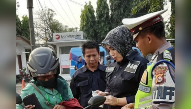 SERANG – Unit Pelaksana Teknis Daerah Pengelola Pendapatan Daerah (UPTD PPD) Cikande bekerjasama dengan Satlantas Polres Serang dan Jasa Raharja Banten gelar Razia Pajak kendaraan di depan Kantor Samsat Cikande. Kamis, (25/7/2019).