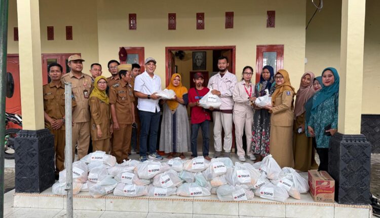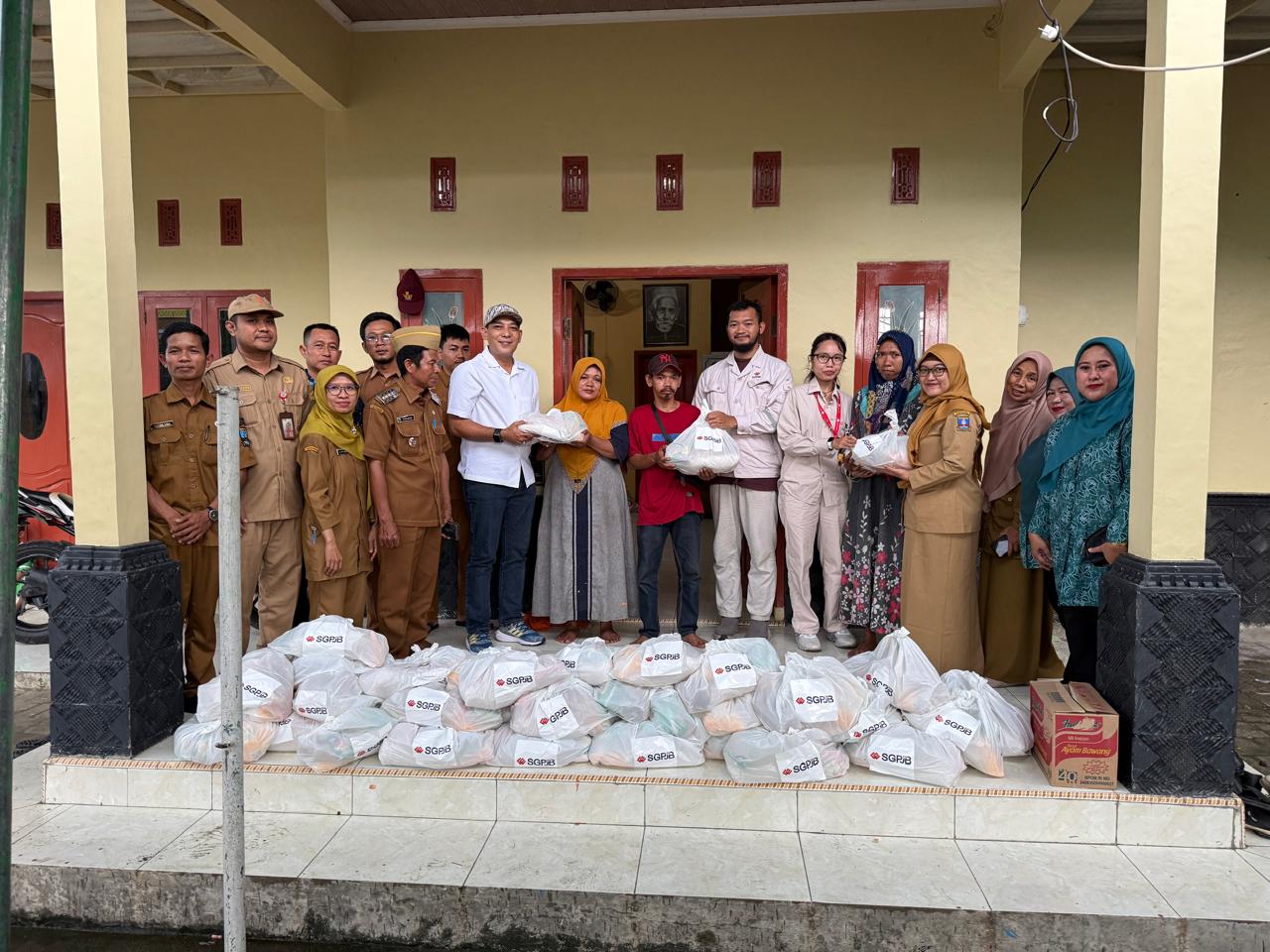 Dalam kesempatan itu, rombongan turut menyerahkan bantuan berupa kebutuhan pokok paket sembako bagi masyarakat yang terdampak banjir.