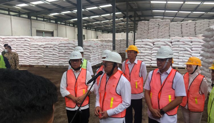 SERANG – Menteri Koordinator Bidang Pangan RI Zulkifli Hasan, didampingi Menteri Desa dan Pembangunan Daerah Tertinggal Yandri Susanto tinjau ketersediaan pupuk di gudang Pupuk Indonesia di Sumur Pecung, Kota Serang, Jumat (10/1/2025).