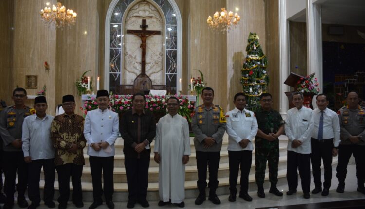 SERANG – Danrem 064/Maulana Yusuf Brigjen TNI Tatang Subarna bersama Penjabat Gubernur Banten Al Muktabar, Kapolda Banten Irjen Pol Rudy Heriyanto dan unsur Forkopimda Provinsi Banten meninjau pelaksanaan malam Misa Natal di sejumlah Gereja di Kota Serang.