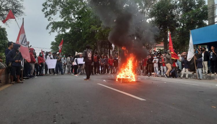 Tolak Omnibus Law, Mahasiswa Blokir Jalan Depan Kampus UIN Banten