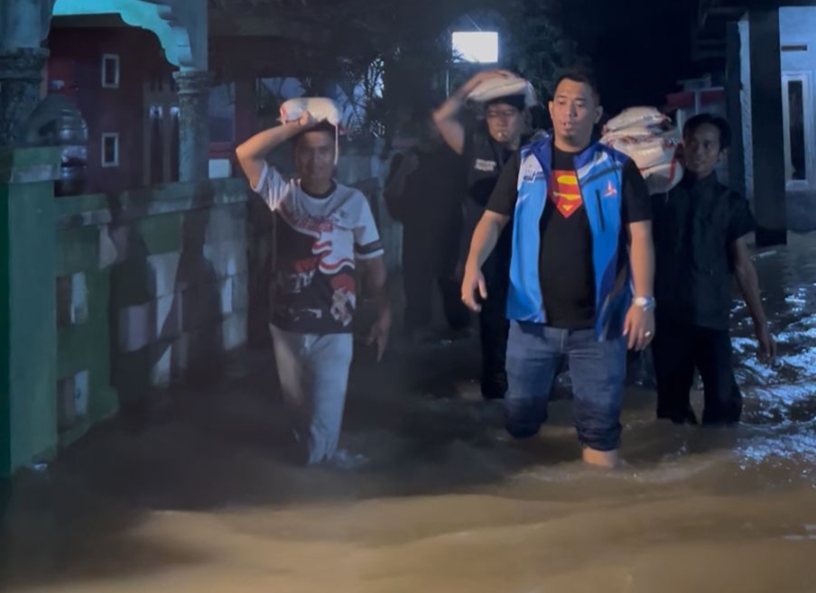 SERANG – Ketua Fraksi Partai Demokrat DPRD Kabupaten Serang, Azwar Anas, turun langsung ke lokasi banjir untuk menyalurkan bantuan kepada warga terdampak di Desa Soggom Jaya, Kecamatan Cikande, Sabtu malam (24/1/2026).
