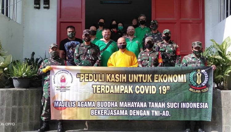 Umat Budha Gandeng Koramil 0201/Serang Salurkan 300 Paket Sembako untuk Penanganan Covid-19