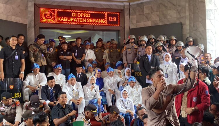 Massa mendesak agar Bupati Serang dan pimpinan DPRD menanggapi berbagai persoalan lokal.