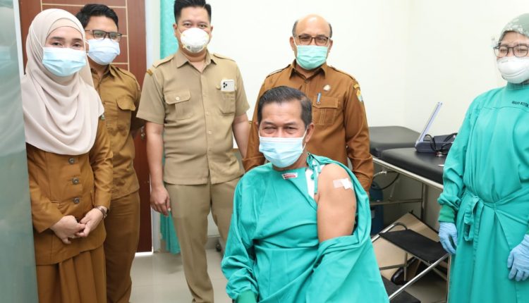 SERANG– Setelah tiga kali gagal menjalani proses vaksinasi Covid-19 lantaran tensi darah tinggi, akhirnya Walikota Serang Syafrudin pun berhasil disuntikan vaksin sinovac pada Senin (1/3/2021), bertempat di RSUD Kota Serang.