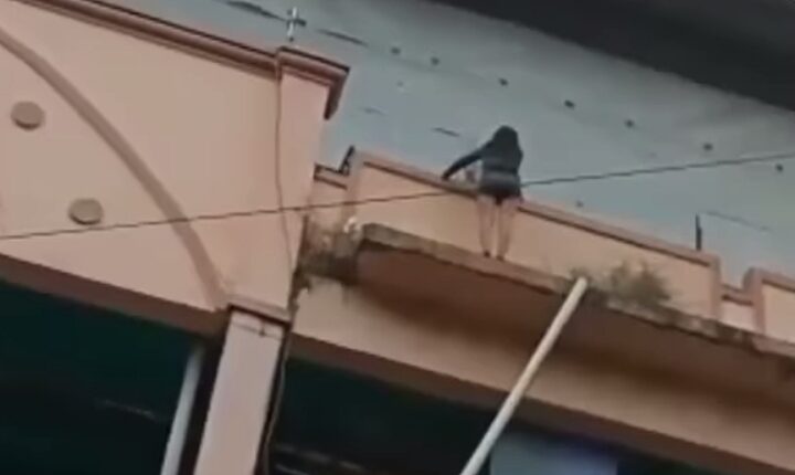 Dalam video tersebut, tampak sejumlah warga yang melihat aksi itu pun berteriak dan berusaha membujuk orang tersebut agar tidak berbuat nekat dengan cara melompat.