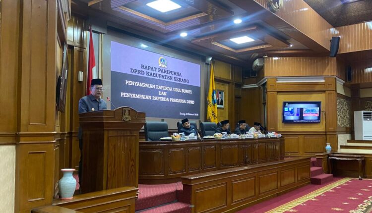 SERANG – Pemerintah Kabupaten (Pemkab) Serang menyiapkan sebanyak 12 Rancangan Peraturan Daerah (Raperda) pada tahun 2026. Hal itu disampaikan Wakil Bupati (Wabup) Serang Najib Hamas dalam rapat paripurna penyampaian Raperda usul Bupati Serang Kamis (12/2/2026).