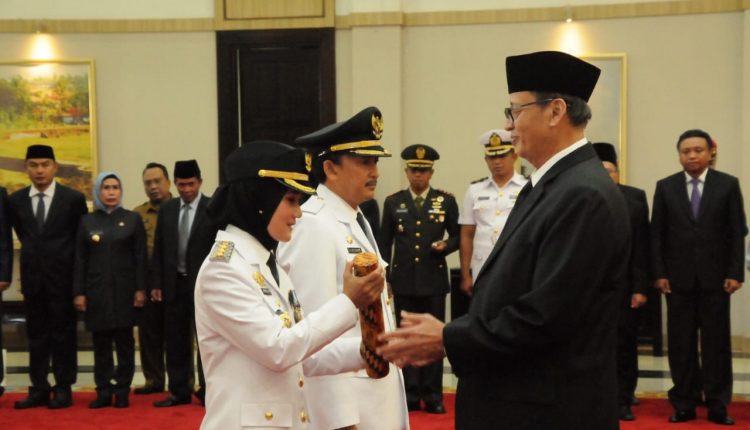 SERANG – Gubernur Banten Wahidin Halim melantik Iti Octavia Jayabaya dan Ade Sumardi sebagai Bupati dan Wakil Bupati Lebak Periode 2019-2024 di Pendopo Gubernur, KP3B, Kecamatan Curug, Kota Serang pada Selasa (15/1/2019).