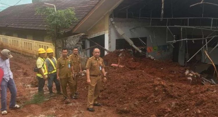 TANGERANG – Truk bermuatan tanah tergelincir menimpa dua ruang kelas SDN Bambu Apus, Pamulang, Kota Tangerang Selatan, hingga ambruk, Minggu, 13 Januari 2019, pukul 23.00 WIB.