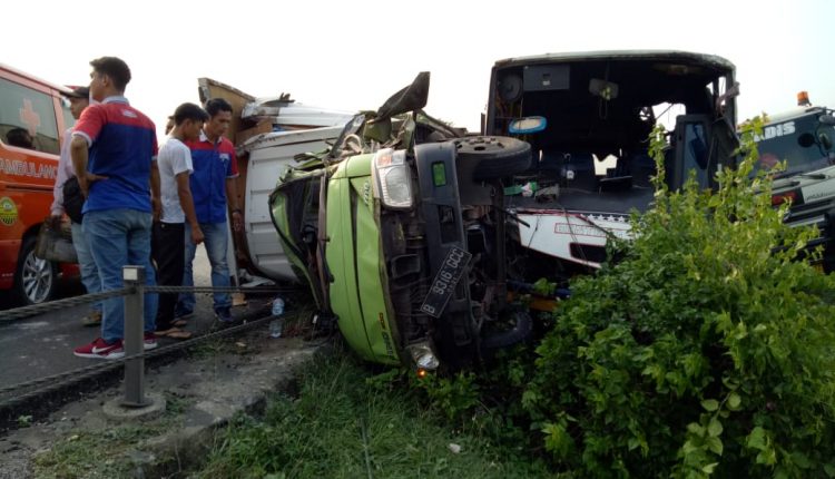 SERANG – Kecelakaan beruntun di jalur bebas hambatan Tol Tangerang-Merak KM 55 di Undar-andir, Kragilan, Kabupaten Serang, melibatkan enam kendaraan, Selasa (27/11/2018).
